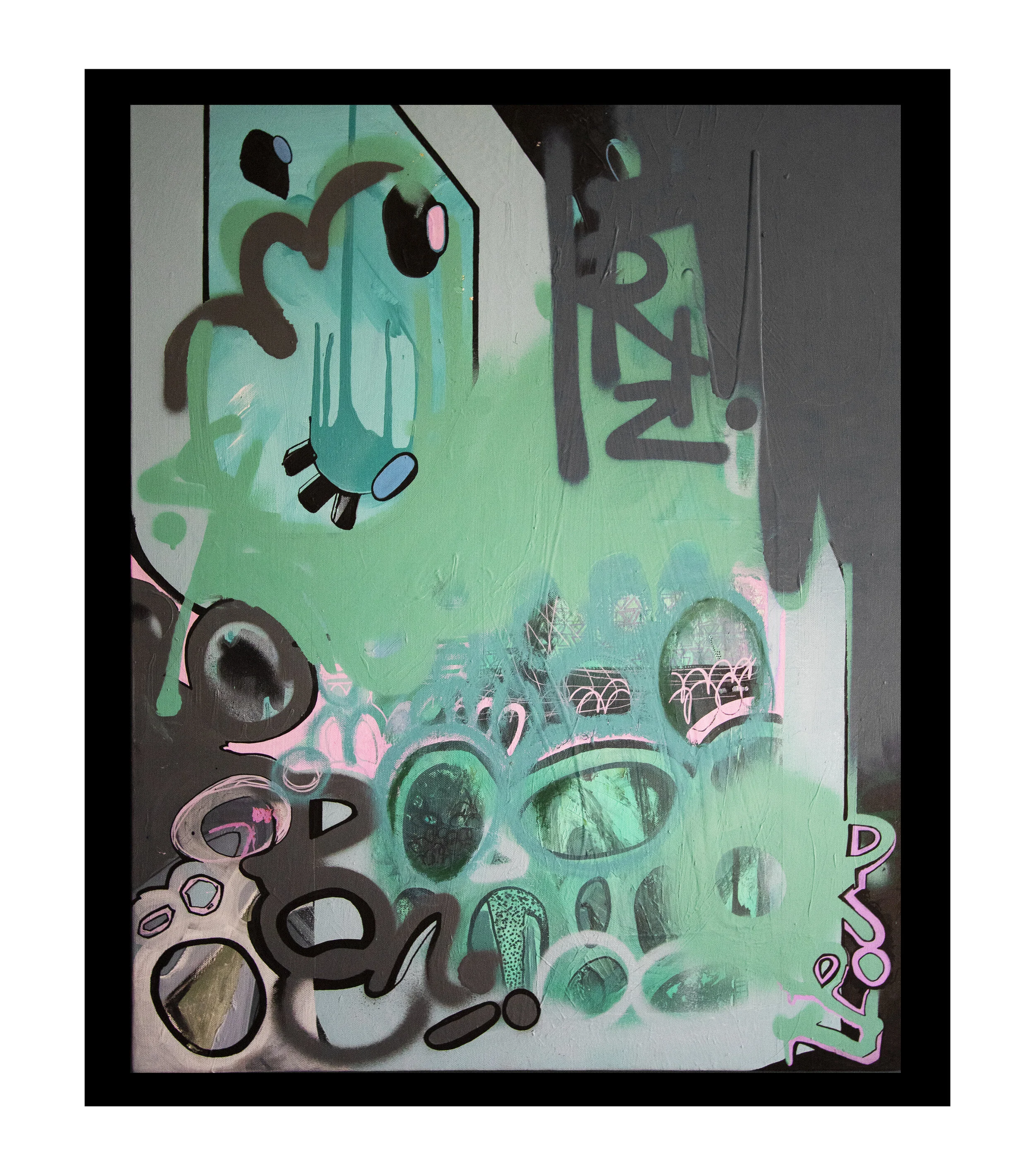 ‘Untitled turquoise’ Mixed media {spray paint, Sennelier 1887 oil pastels, post pens and acrylic paint 60 x 76cmSOLD