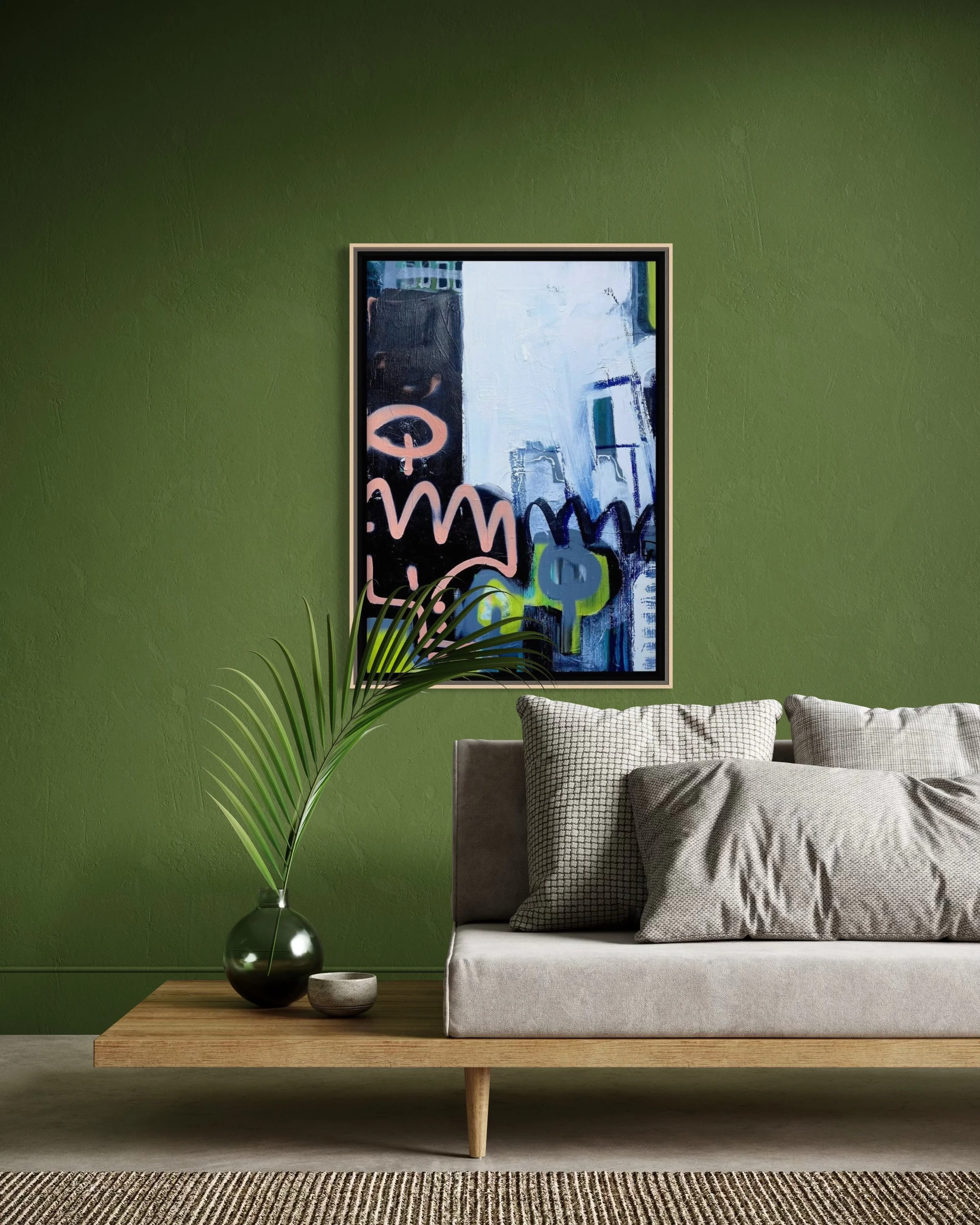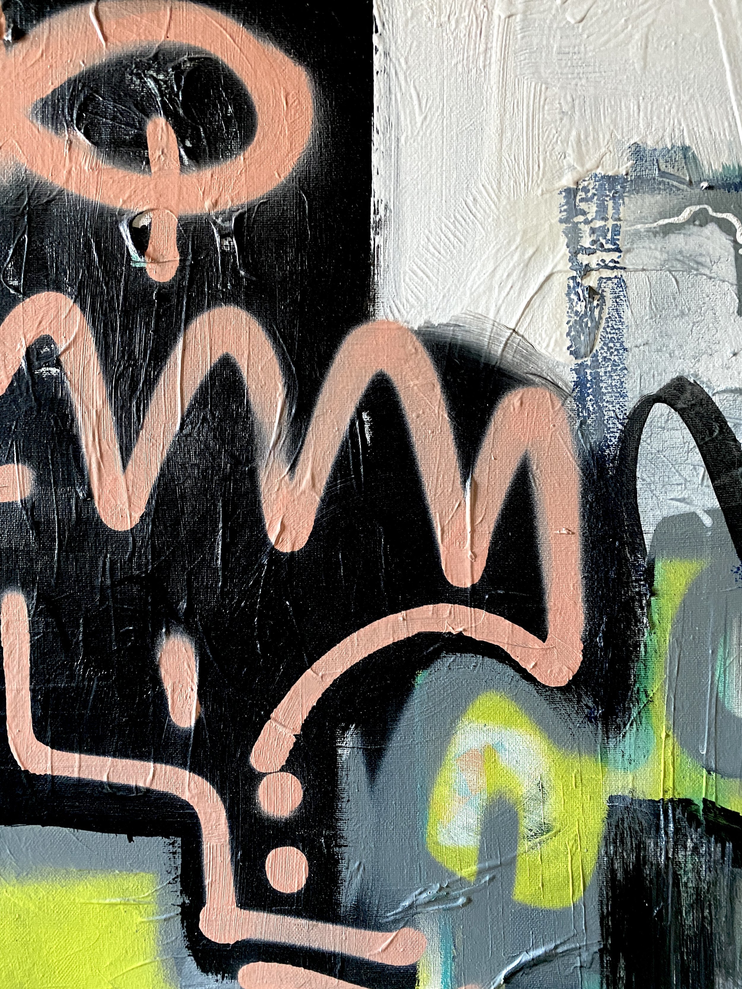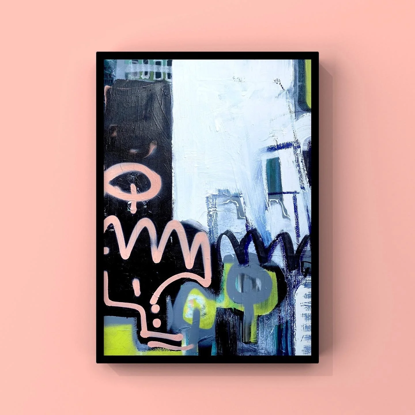 “Untitled 01” captures the raw pulse of the modern city — a layered collision of chaos and rhythm. Through bold strokes and graffiti-like crowns, my intention was to blur the line between street expression and abstract reflection. This piece invites viewers to find their own meaning amid the noise — a quiet voice in a restless landscape” -EmmaAnne, Wiltshire
