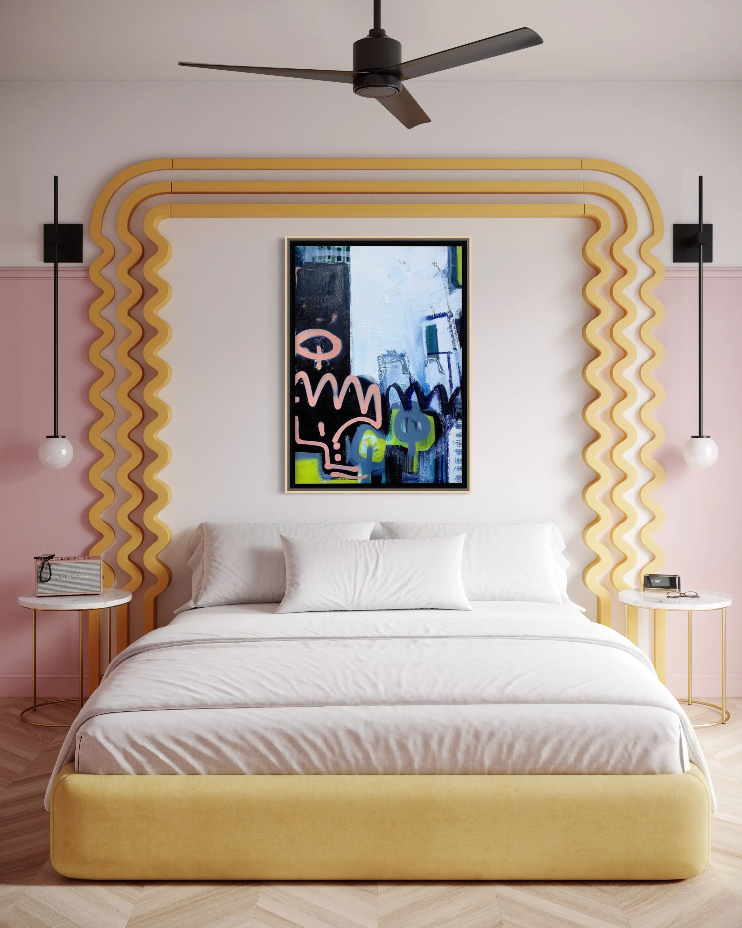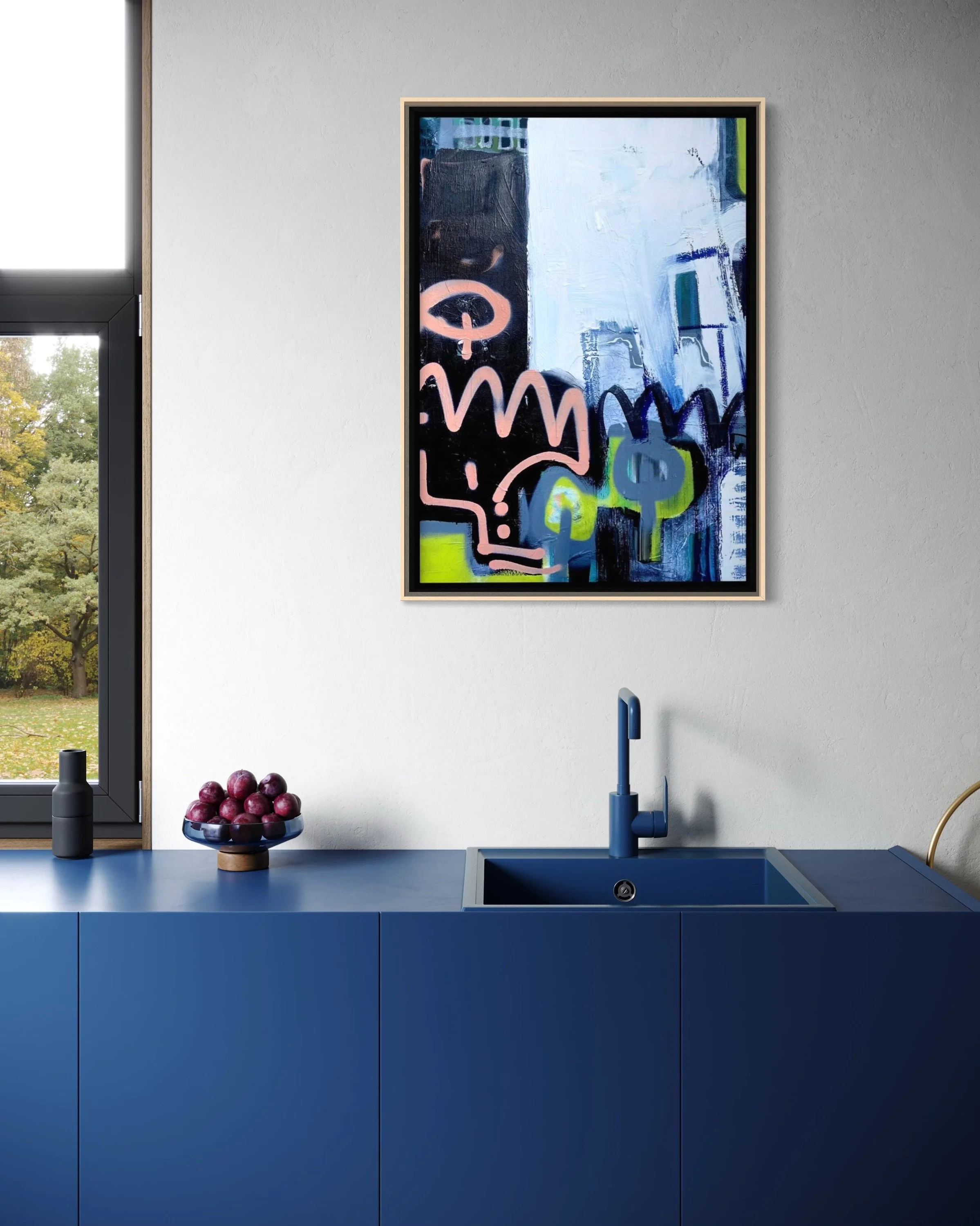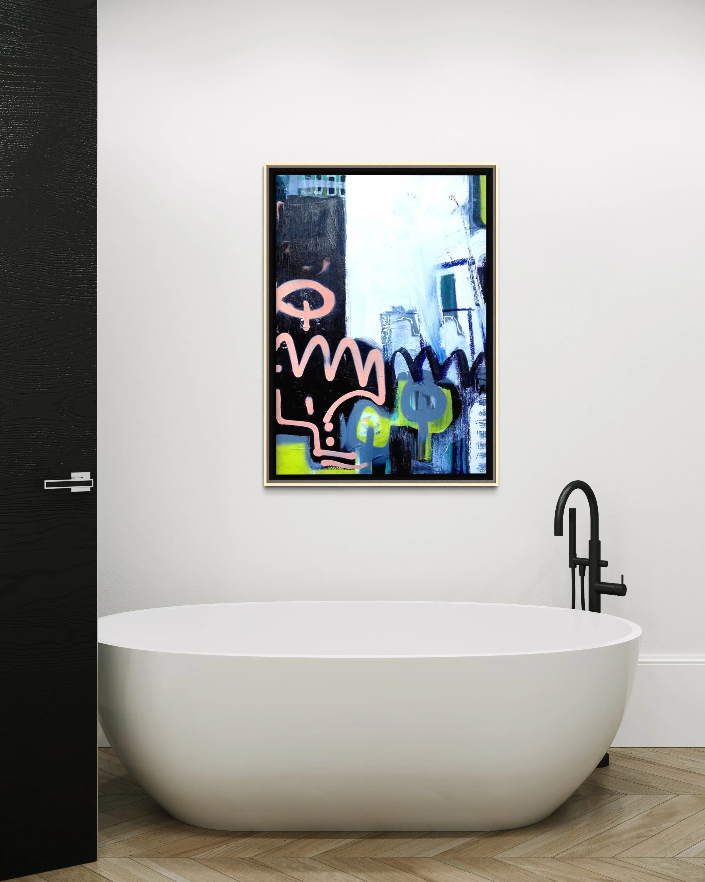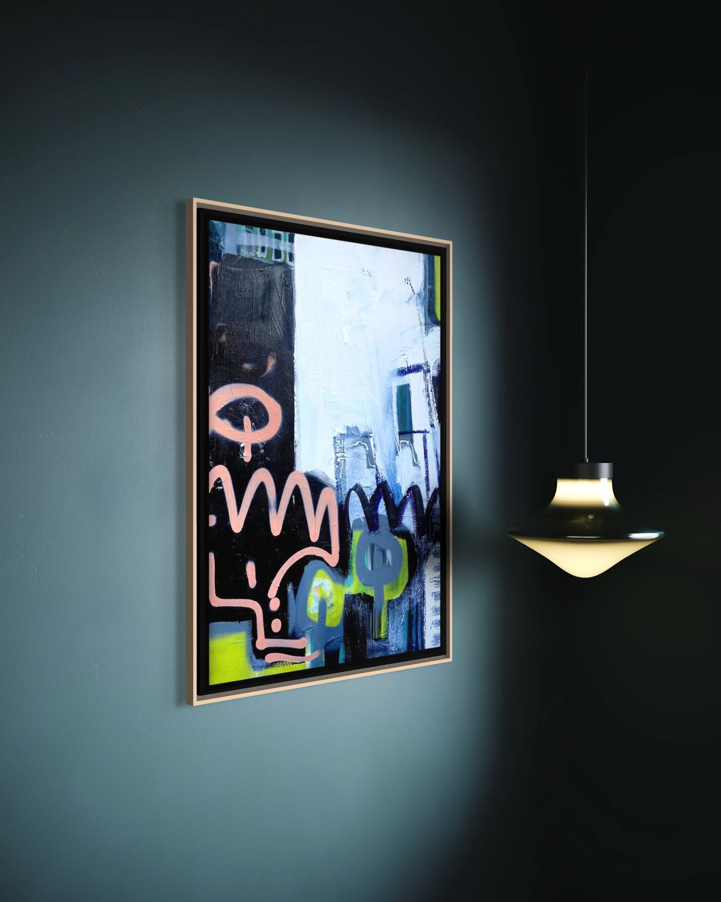 “Untitled 01” captures the raw pulse of the modern city — a layered collision of chaos and rhythm. Through bold strokes and graffiti-like crowns, my intention was to blur the line between street expression and abstract reflection. This piece invites viewers to find their own meaning amid the noise — a quiet voice in a restless landscape” -EmmaAnne, Wiltshire